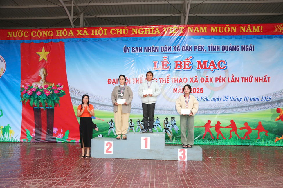 Lễ bế mạc khép lại trong không khí vui tươi, phấn khởi, rộn ràng tiếng vỗ tay và cờ hoa rực rỡ. Đại hội TDTT xã Đăk Pék lần thứ I năm 2025 không chỉ là dịp biểu dương sức mạnh đoàn kết của nhân dân, mà còn là bước khởi đầu quan trọng trong việc phát triển phong trào thể dục thể thao quần chúng, hướng tới Đại hội TDTT huyện và tỉnh trong thời gian tới.