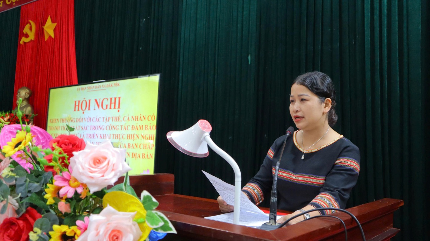 Đồng chí Y Ly Sa – ĐUV, Trưởng phòng VH-XH xã thông qua quyết định khen thưởng