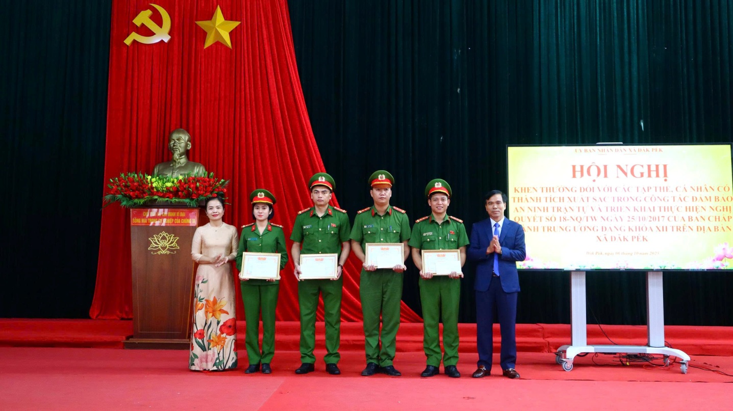 Sáng ngày 06/10/2025, Đảng ủy xã Đăk Pék tổ chức Lễ chào cờ và sinh hoạt chính trị dưới cờ tháng 10/2025, đồng thời trao khen thưởng cho các tập thể, cá nhân có thành tích xuất sắc trong công tác đảm bảo an ninh trật tự và triển khai thực hiện Nghị quyết số 18-NQ/TW ngày 25/10/2027 của Ban Chấp hành Trung ương.