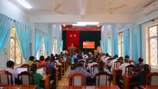 Đồng chí Lê Viết Nam - Bí thư Đảng ủy, Chủ tịch HĐND phát biểu kết luận tại Hội nghị giao ban.