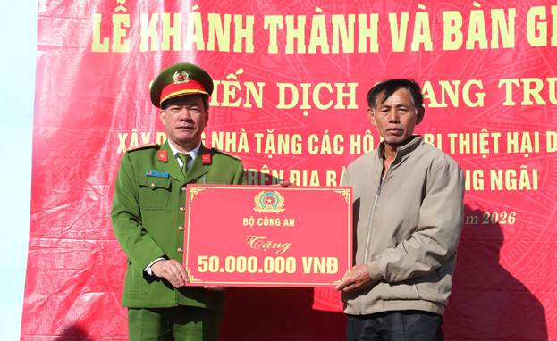 Thực hiện Công văn số 40, ngày 05 tháng 01 năm 2022 của Công an tỉnh Quảng Ngãi về việc báo cáo tổng kết “Chiến dịch Quang Trung” xây dựng nhà ở tặng cho hộ dân bị thiệt hại do thiên tai trên địa bàn tỉnh, sáng ngày 09/01, Công an xã Đăk Pék đã phối hợp với chính quyền địa phương tổ chức Lễ khánh thành và bàn giao nhà ở cho hộ gia đình ông Phan Doãn Niên, trú tại thôn Đăk Poi, xã Đăk Pék.