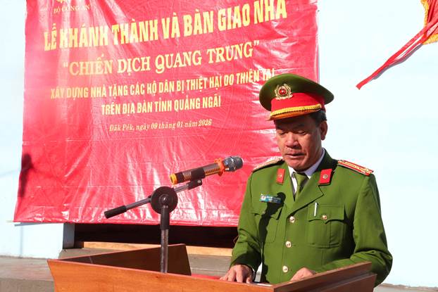 Phát biểu tại buổi lễ, Thượng tá Nguyễn Văn Chiêu – Phó Giám thị Trại tạm giam số 2 Công an tỉnh Quảng Ngãi đã biểu dương tinh thần trách nhiệm, sự chủ động, tích cực của Công an xã Đăk Pék và chính quyền địa phương trong việc triển khai hiệu quả “Chiến dịch Quang Trung”; đồng thời chia sẻ, động viên gia đình ông Phan Doãn Niên sớm ổn định cuộc sống, yên tâm lao động sản xuất, vươn lên trong cuộc sống./